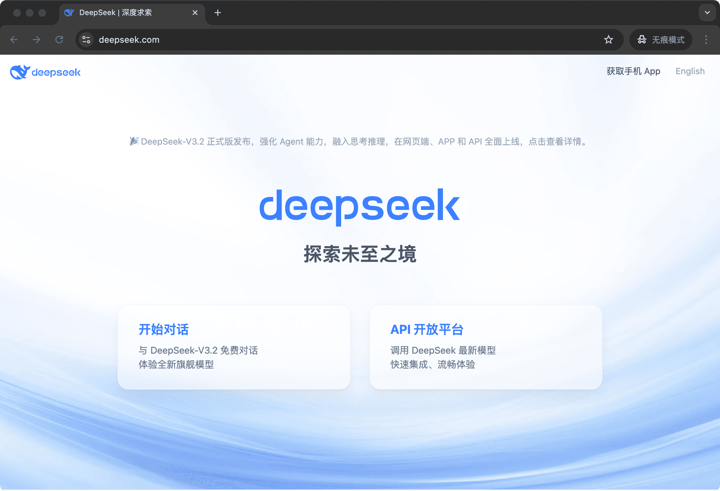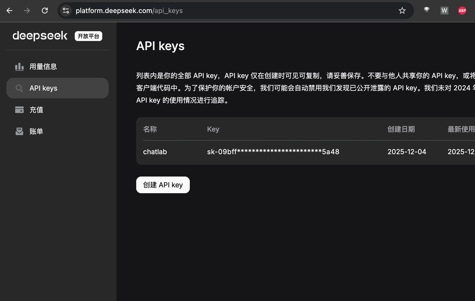 - 访问 Deepseek 官网,选择 API 开放平台,注册并登录